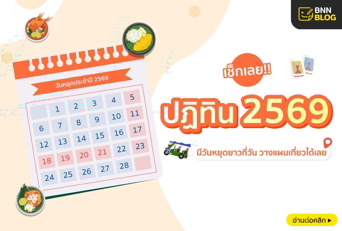วันหยุด 2569 อัปเดตล่าสุดทั้ง วันหยุดราชการ และ วันหยุดธนาคาร มีหยุดยาว กี่วัน วันปีใหม่ สงกรานต์ วันพ่อ วันแม่ หยุดชดเชยเมื่อไหร่ลาพักร้อน เตรียมล่วงหน้าได้เลย